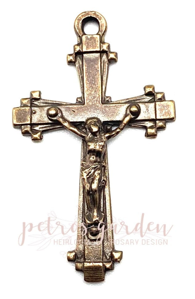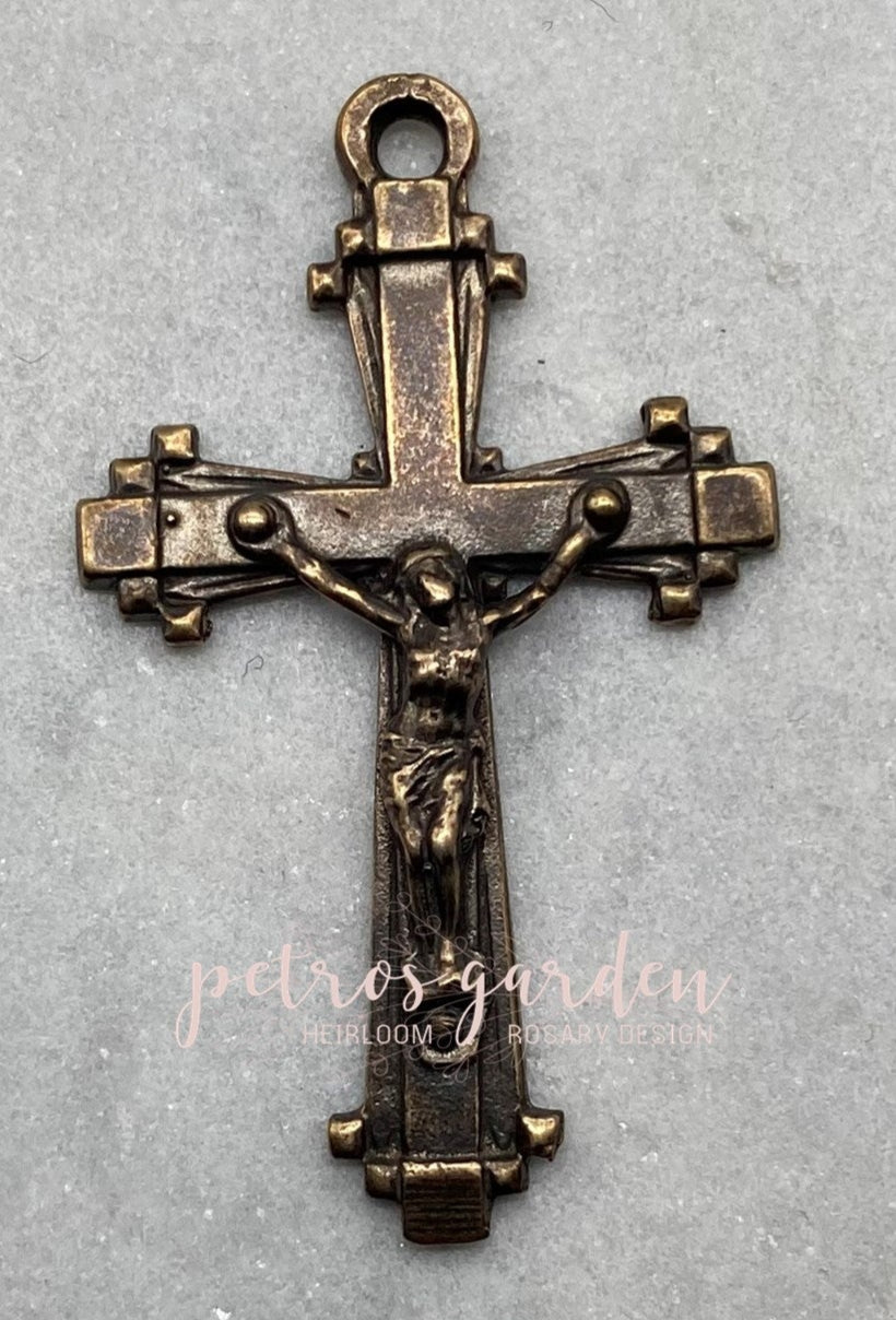 Solid Bronze ART DECO WITH RIVETS Rosary Crucifix Antique Vintage Reproduction #PG3183