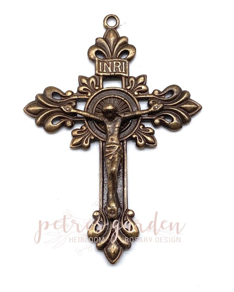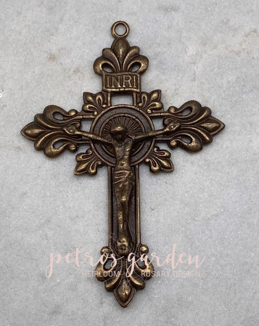 - Solid Bronze rosary crucifix with antique finish