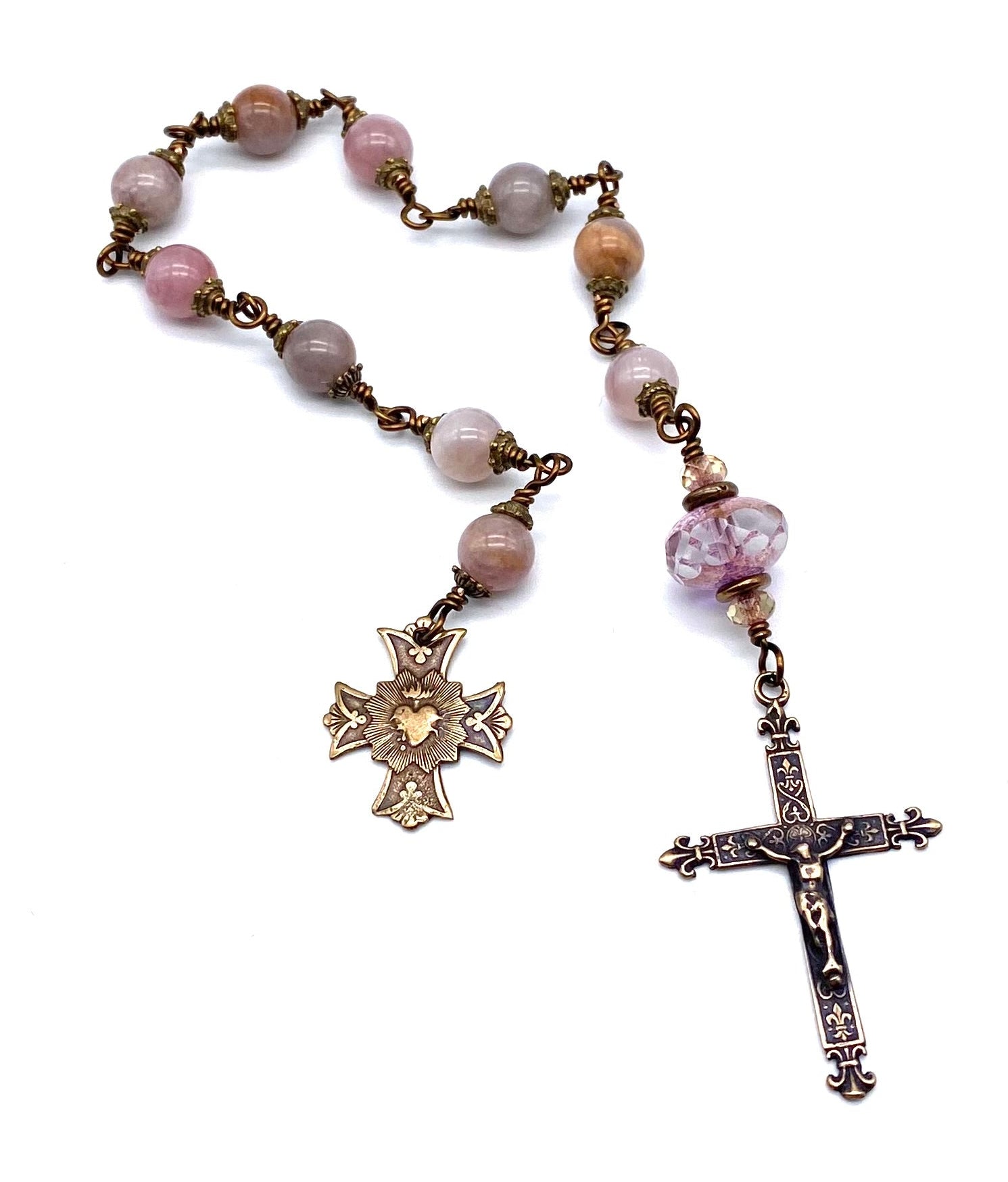 Madagascar Rose Quartz Gemstone Wire Wrapped Catholic Heirloom Tenner Rosary